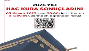 2026 yılı hac kuraları çekildi 05.11.2025 Hac ibadeti için kaydını yenileyen ve ön kayıt yaptıran 1 milyon 799 bin 835 kişinin katıldığı hac kuraları çekildi. Hacı adayları, sonuçları saat 20.00'den itibaren e-Devlet üzerinden öğrenebilecek. Detay